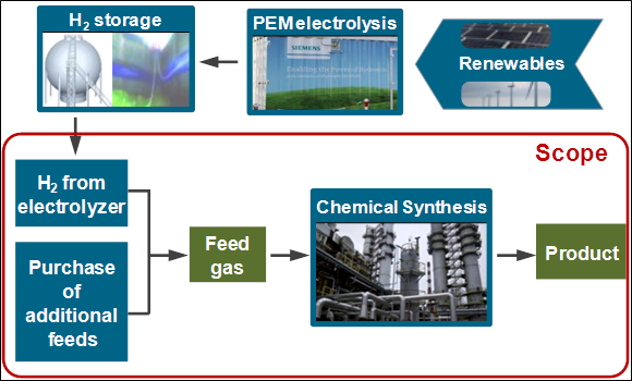 Since renewable electricity sources are rather distributed and have a smaller power generation capacity compared to fossil plants, today’s chemical synthesis plants do not fit in terms of capacity as they have often been designed for investment cost optimization in world scale size. However, the distributed generation of excess electricity requires the development of future synthesis systems that are smaller in scale (e.g. <100 MW) and allow a more flexible operation (fast load ramps, improved part load behavior, etc.) to adapt their production rate to fluctuating energy sources.